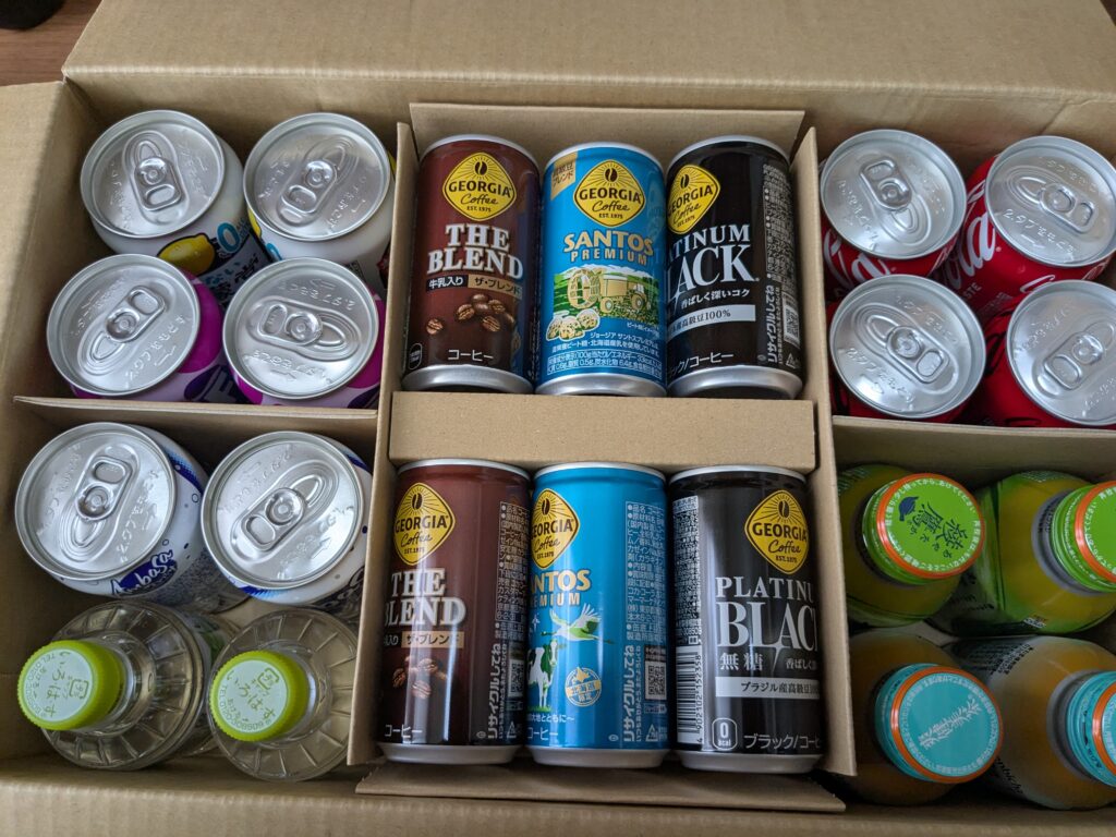 箱を開けると、コーラやジュースなど22本がぎっしり!普段買わない味に出会えるのも楽しみのひとつです。